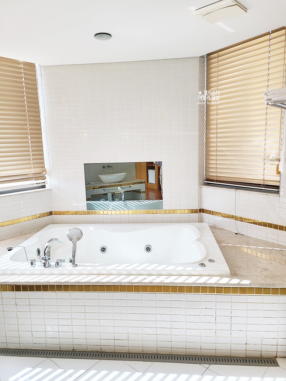 욕실 조차도 충분한 채광이 들어와서 욕실이 더욱 예쁘게 보였다. (심지어 욕조 앞에 있는 거울.. 저거 TV임!!!)