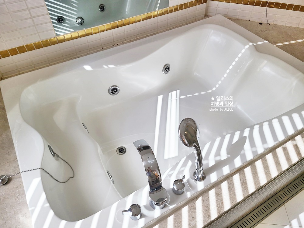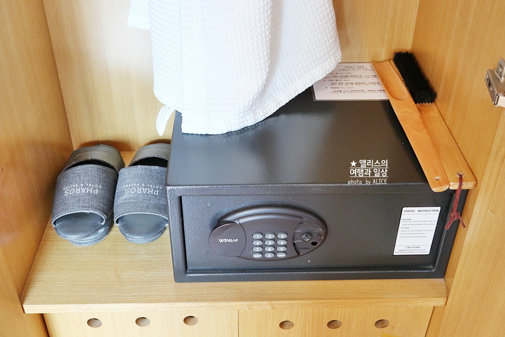 욕실 자체가 충분히 넉넉하고 넓고 낮에는 충분한 채광이 들어오기에 뜨거운 물을 가득 채워도 습도가 심하게 높아지는 느낌이 들지 않고 답답함도 덜 느껴졌다. 스파 욕조 크기도 크고 바로 앞에 거울이 있지만 사실 TV라는 점. 욕조가 필요한 사람이라면 파로스 호텔 디럭스 더블룸을 선택한다면 아마 만족도가 상당히 높지 않을까 싶다.