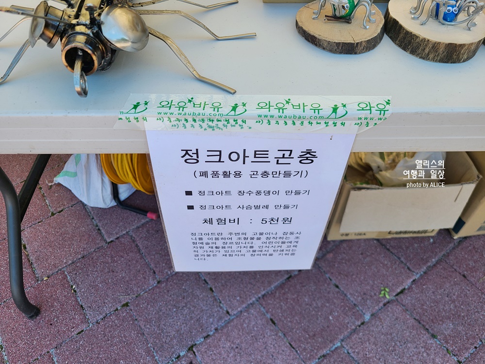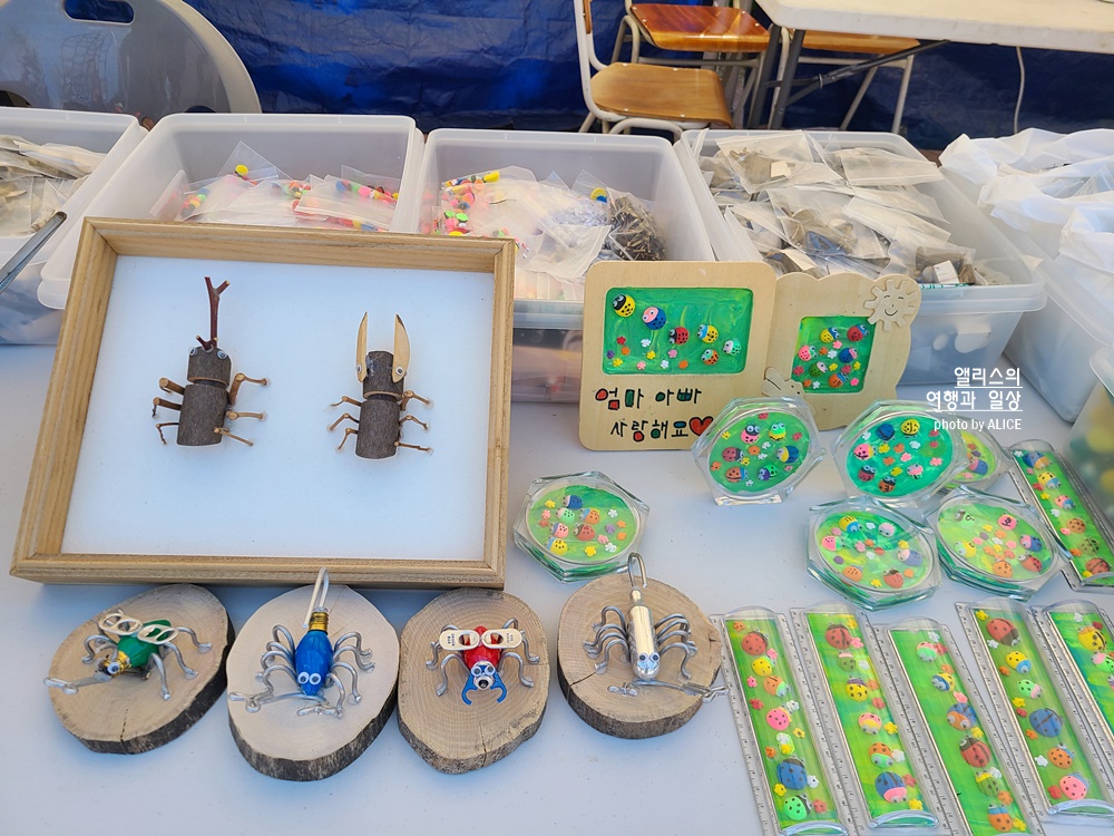 우드버닝이라고 해서 나무에 직접 그림이나 글자를 새기는 것도 있었고, 정크아트 곤충은 평소 우리가 쓰레기라고 생각한 것을 이용해서 멋진 곤충을 만드는 것도 있었다. 신기방기~