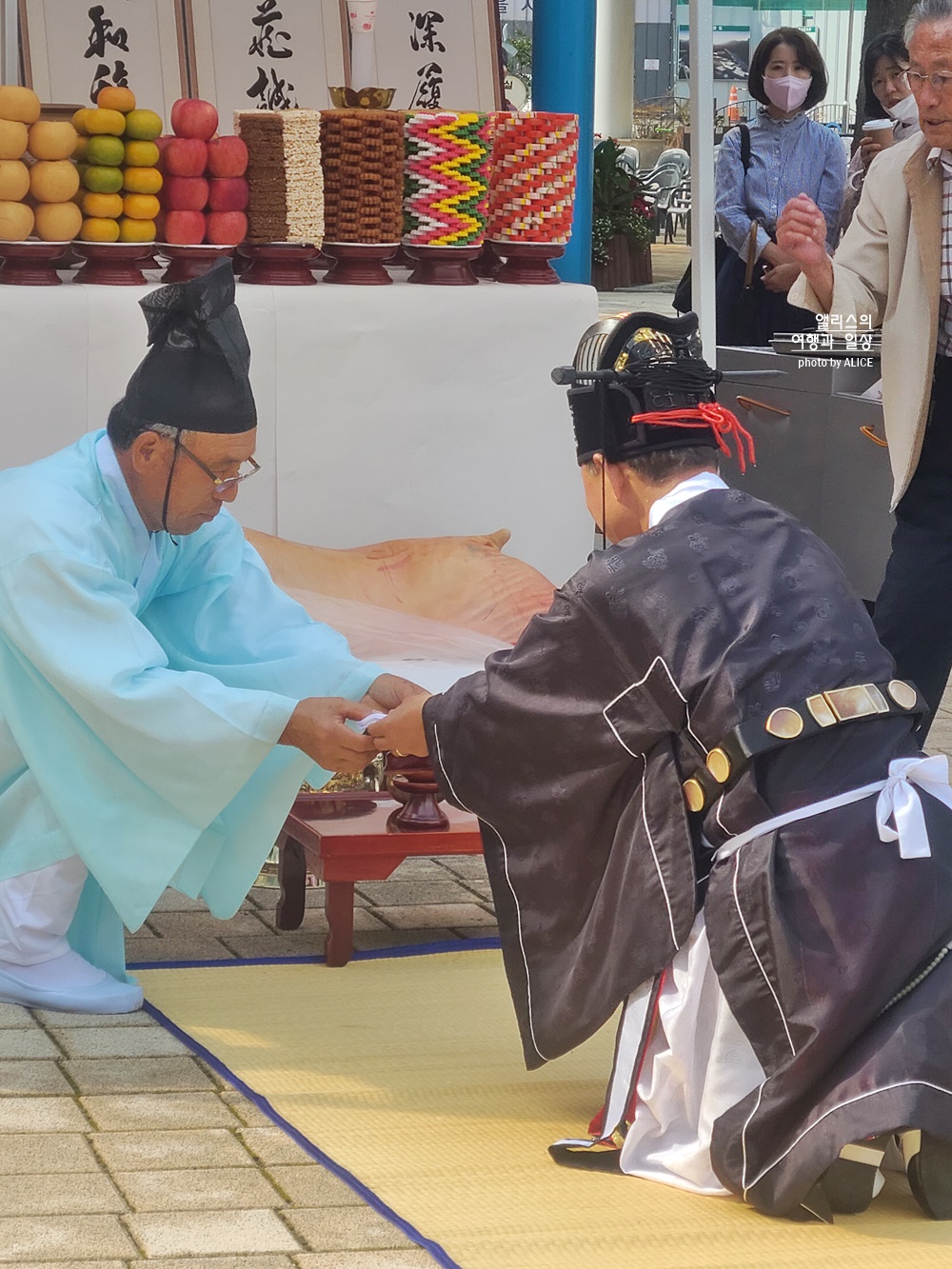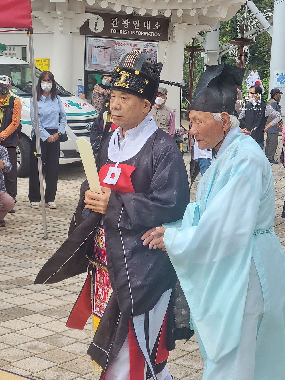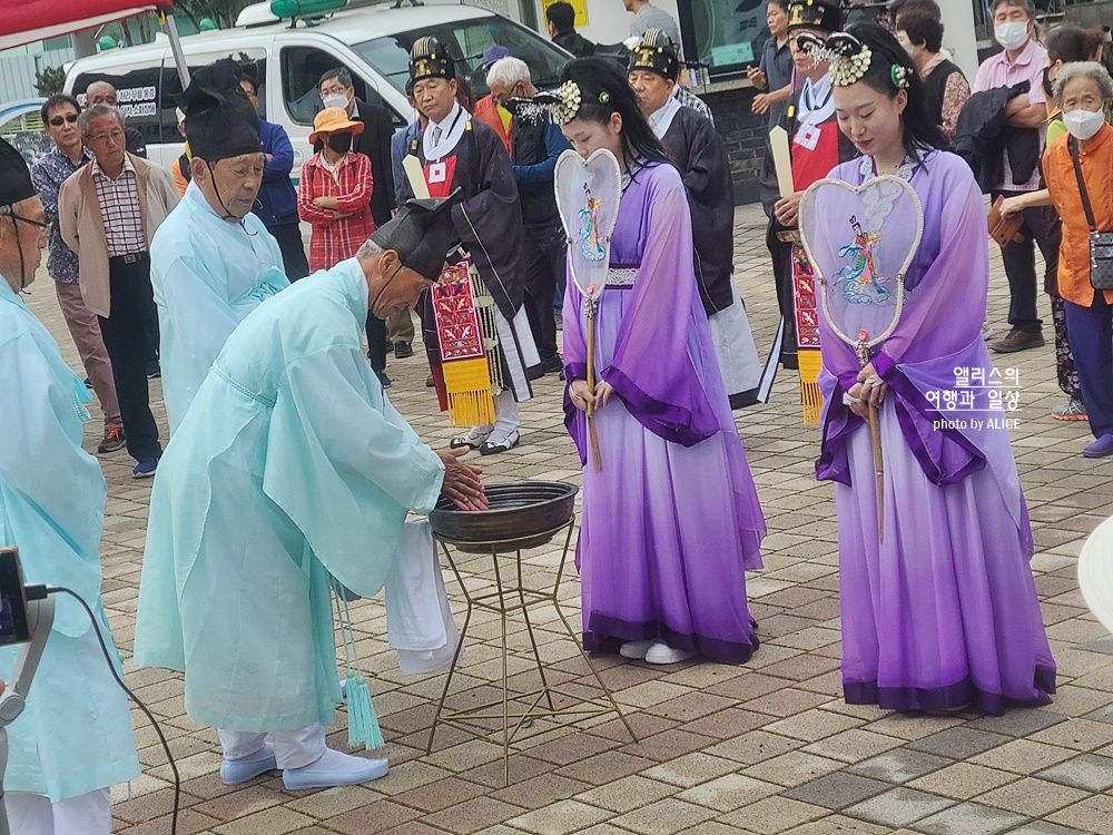 이런 행사를 처음 봐서 모든 것이 신기방기 했다. 보라색 옷을 입은 분들의 역할이 궁금했는데 지나가면서 들린 말은 선녀들이 온정수신제를 기다리고 있는 것이라고.