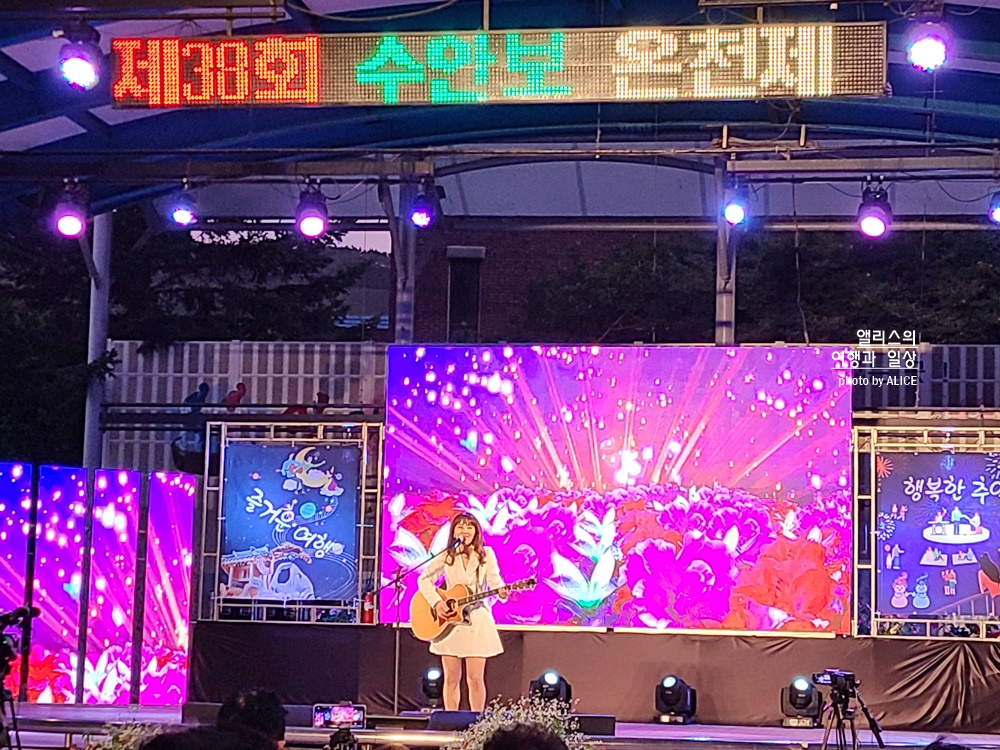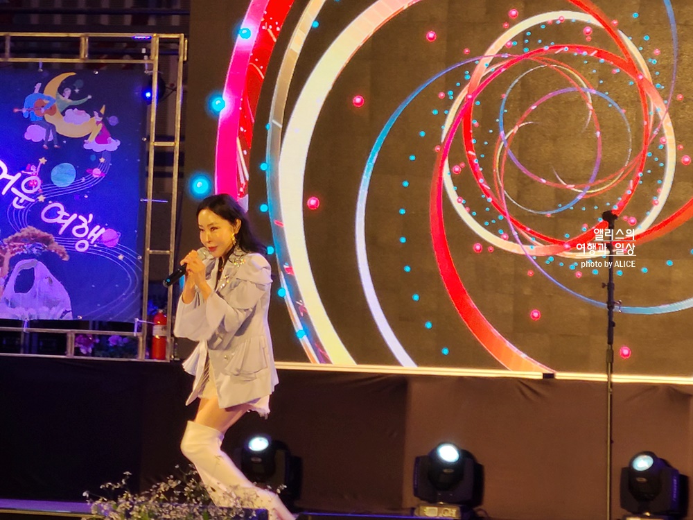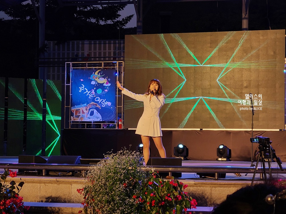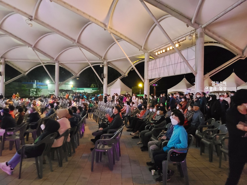 이벤트에 참여하고 나서 온천을 즐기고 저녁을 먹은 뒤 전야제 축하공연을 보러 다시 물탕공원으로 향했다. 초청가수와 예술단의 공연이 진행된다고 해서 기대를 품고 자리를 잡고 공연을 관람했다.