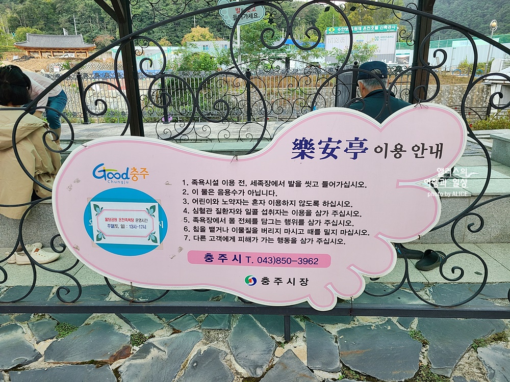 수안보 내의 물탕공원 오른쪽으로 이동하면 이런 족욕탕을 볼 수 있다. 누구나 무료로 이 족욕탕을 이용할 수 있다. 개인 수건만 챙기면 언제든지 시간제 한없이 고품질의 수안보 온천 족욕을 즐길 수 있다.