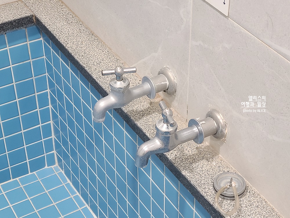 물탕공원으로 가는 길에 보면 이렇게 음용 가능한 상수도와 음용금지인 온천수가 적힌 수전을 볼 수 있다. 여기에 온천수가 적절한 온도로 조절되어서 나오니 여기에 손이라도 씻어보자. 수안보 온천수를 그대로 경험할 수 있다. 무료로! ^^