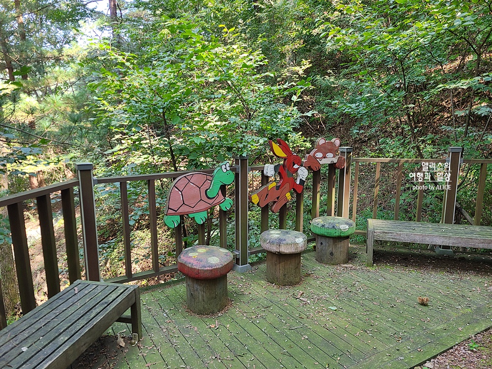 충북 충주시 수안보면 휴 탐방로는 그 입구에서 팔각정 왕복 40~50분 정도 소요거리다. 약간 가파른 곳곳이 있어서 무리하지 않는 선에서 가볍게 다녀오는 것을 추천한다. 사람이 많지 않고 공기 좋고 전망대까지 올라가면 수안보가 한눈에 보이기도 한다. (산이니 야생동물 조심하기!)