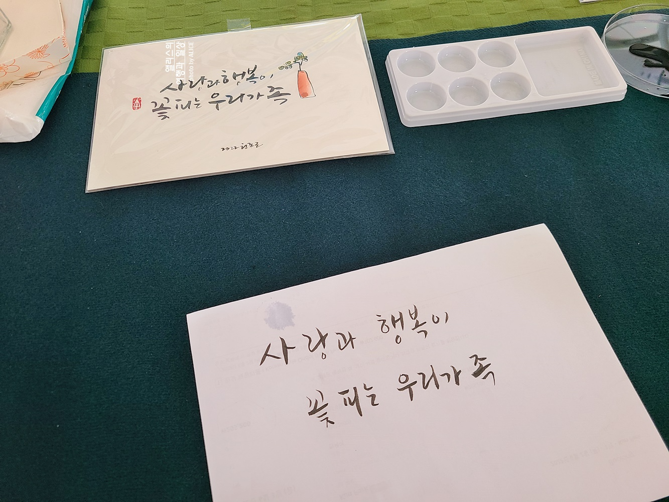 평소 내가 취미로 하고 있던 민화는 전문 강사의 지도 아래 체험해볼 수 있었고 처음 해보는 캘리그래피는 주변 사람들에게 엄청 칭찬 많이 받았다. (나보고 엄청 잘한다고 폭풍 칭찬 해주심~)