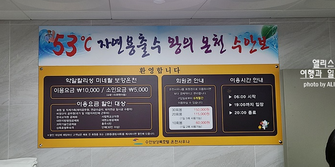 수안보 상록호텔의 대중사우나의 경우 시설도 잘 되어있고 공간도 넓고 커서 이용하기 편리했다. 원래 비투숙객의 경우 1인 1만 원인데 주변 식당에서 30% 할인쿠폰을 얻을 수 있어서 나는 7천 원에 이용할 수 있었다. (투숙객은 7천 원)