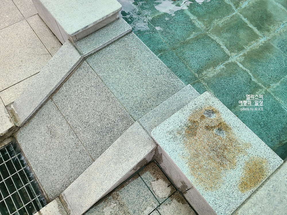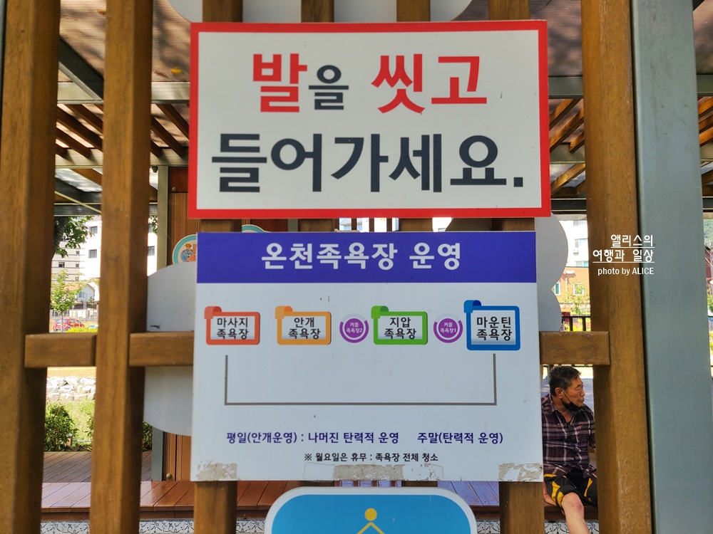 근처에 세족장이 별도로 있어서 반드시 공용으로 모든 사람들이 이용하는 대중 족욕탕에 들어가기 전에 발을 씻고 들어가야 한다. 에티켓은 우리 모두 지키는 걸로~~
