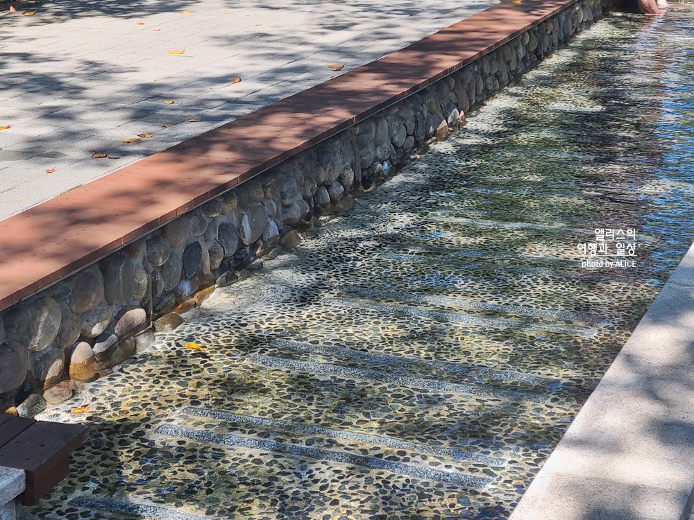 물이 적당히 좋은 온도라 기분 좋게 발을 담가 신체 일부 기관중 가장 피로도가 높은 발의 피로도를 낮추어 전신 혈액순환을 도모하고 몸을 가볍게 하기에 아주 좋다.
