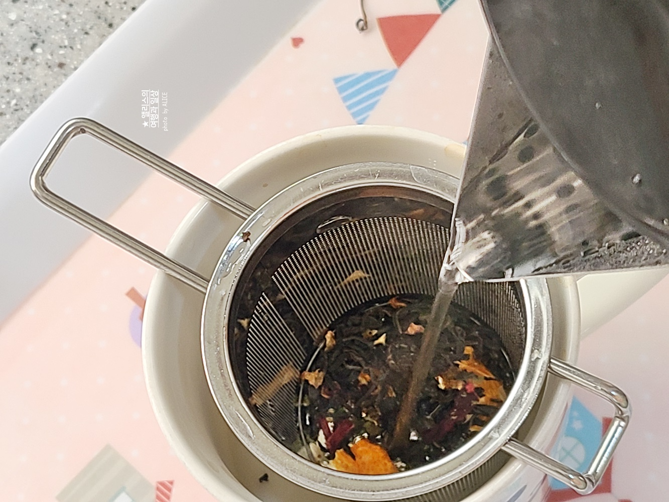 이런 잎차를 마실 때는 티 인퓨저를 구비해두면 좋다. 특히 스테인리스는 위생적으로 관리하기도 편하다.