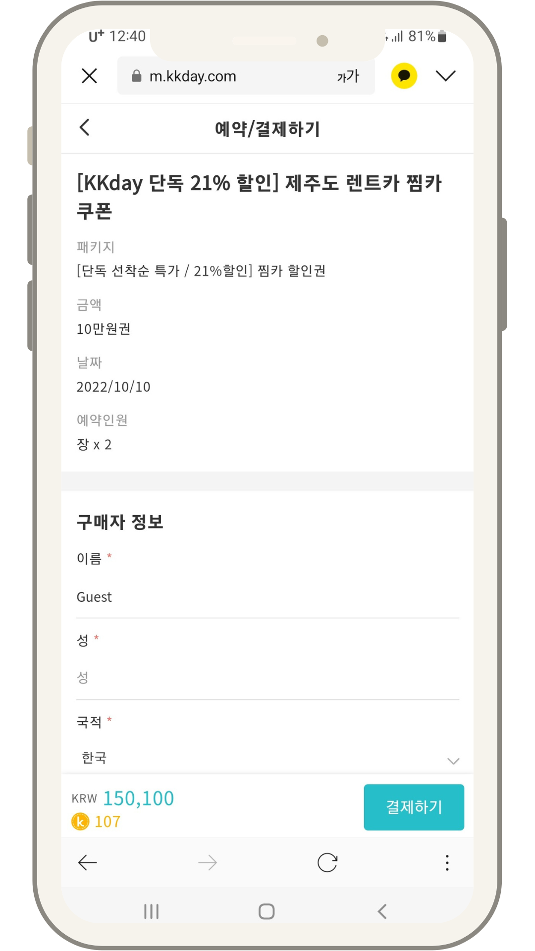3. kkday 제주 렌트카 찜카 단독 추가 할인코드