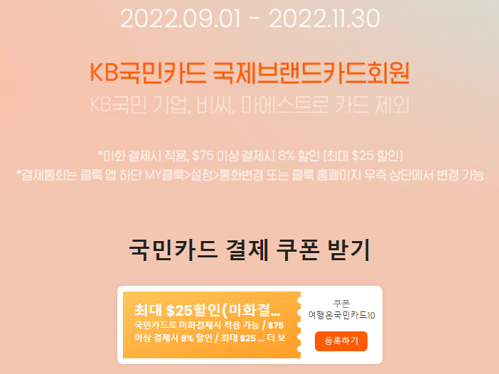 클룩 10월 할인코드 국민카드 8% 할인 하나카드 10% 할인쿠폰 KT 멤버십 최대 5만원 할인 프로모션