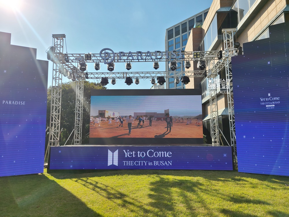 지나가는 길에 본 파라다이스 야외 잔디에도 옛 투 컴 콘서트와 엑스포 유치 기원 이벤트가 있어 보였다.