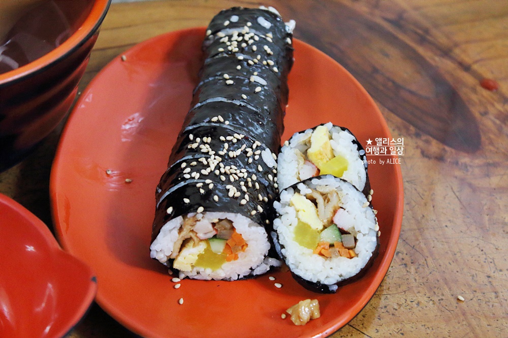 이와 함께 판매되는 깔끔한 맛의 김밥(이집에는 햄이 안들어가고 유부가 들어감. 그래서 내가 아주 좋아함)과 즉석에서 잘 튀겨낸 만두, 시원한 육수의 어묵까지. 아주 맛나다. (물론 내 입맛 기준이다.) 기회되면 드시길!