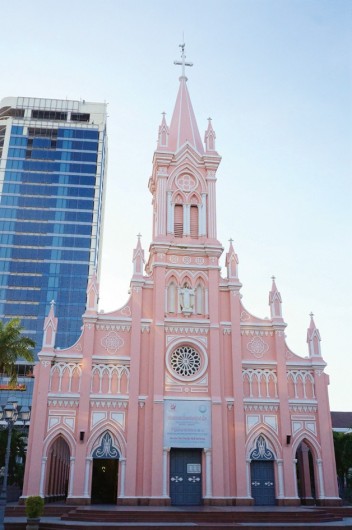 1923년 세워진 옅은 분홍빛의 다낭 대성당은 첨탑 위에 닭 모양의 풍향계가 달려 있어 '수탉 성당'으로 불린다.