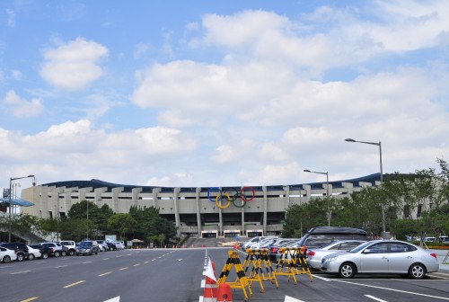 · 9호선 종합운동장역 9번 출구로 나와서 올림픽주경기장까지 약 1,000m 걷기 (실내체육관까지는 약 600m)
