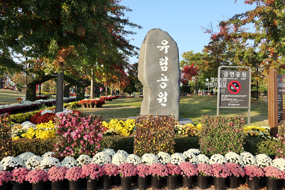 온천 호텔에서 걸어서 10분이면 도착가능했다. 가볍게 산책하려고 도착한 유림공원에서 만난 화려한 국화를 보고 유성국화전시회가 한창이라는 사실을 알게 되었다. 어찌나 화려하고 아름답던지 카메라를 꺼내들지 않을 수 없었다.