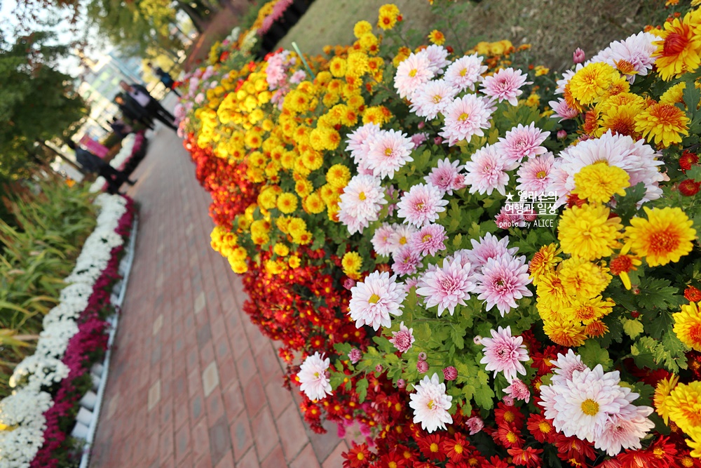 국화를 정말 정성들여서 잘 키운 것 같았다. 흐드러지게 핀 꽃이라는 표현이 아주 잘 맞는 것이 아닐까. 각 국화가 가지고 있는 모양새는 물론 색상마저 선명했다. 그러니 아름다울 수 밖에. 모여있으니 더욱 화려했다. 걷는 길마다 국화가 한창이었다. 모든 이들이 카메라를 꺼내들어 기록으로 남겼다. 암, 이런건 기록으로 남겨야지!