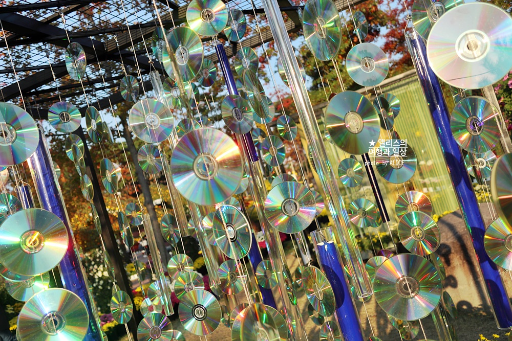 화려한 국화 꽃만 있는 것도 아니었다. 다양한 의미를 담아낸 전시작품도 있었다. 늦은 오후 길어지는 노을 빛을 담아내거나 반사하거나. 어쨌든 전시 작품도 이 곳의 화려한 국화와 잘 어울렸다. 포토존이 많은 유림공원이라는 말이 잘 어울린다는 생각이 들었다.