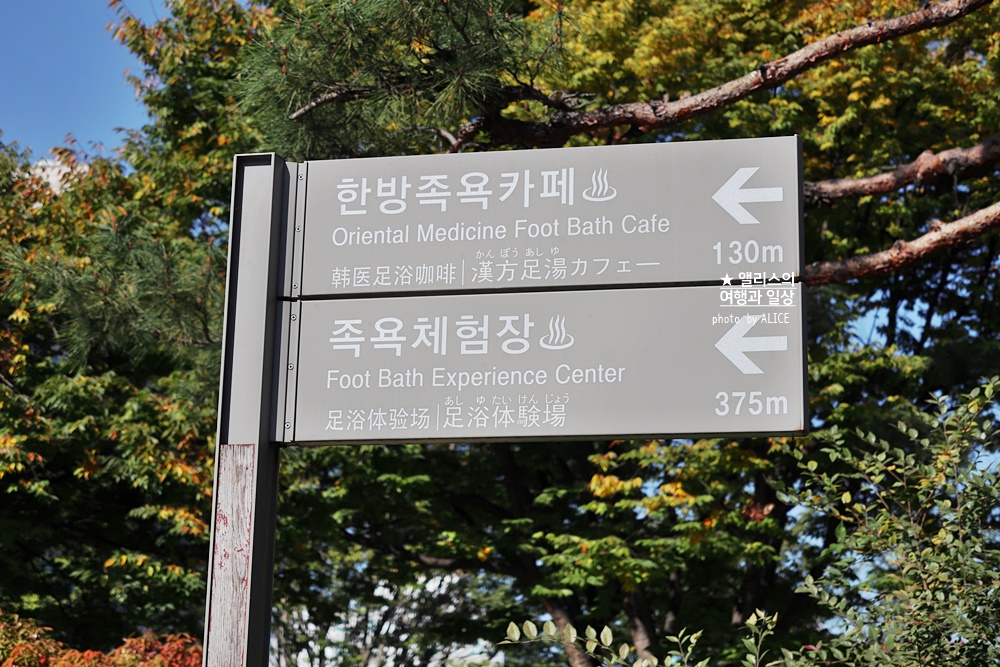 이렇게 크고 넓은 족욕체험장이 크게 4개 그룹으로 나뉜다. 대략 한 곳에서만 몇십 명이 동시에 족욕을 할 수 있을 정도로 크고 넓다.