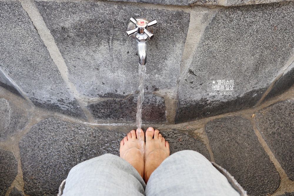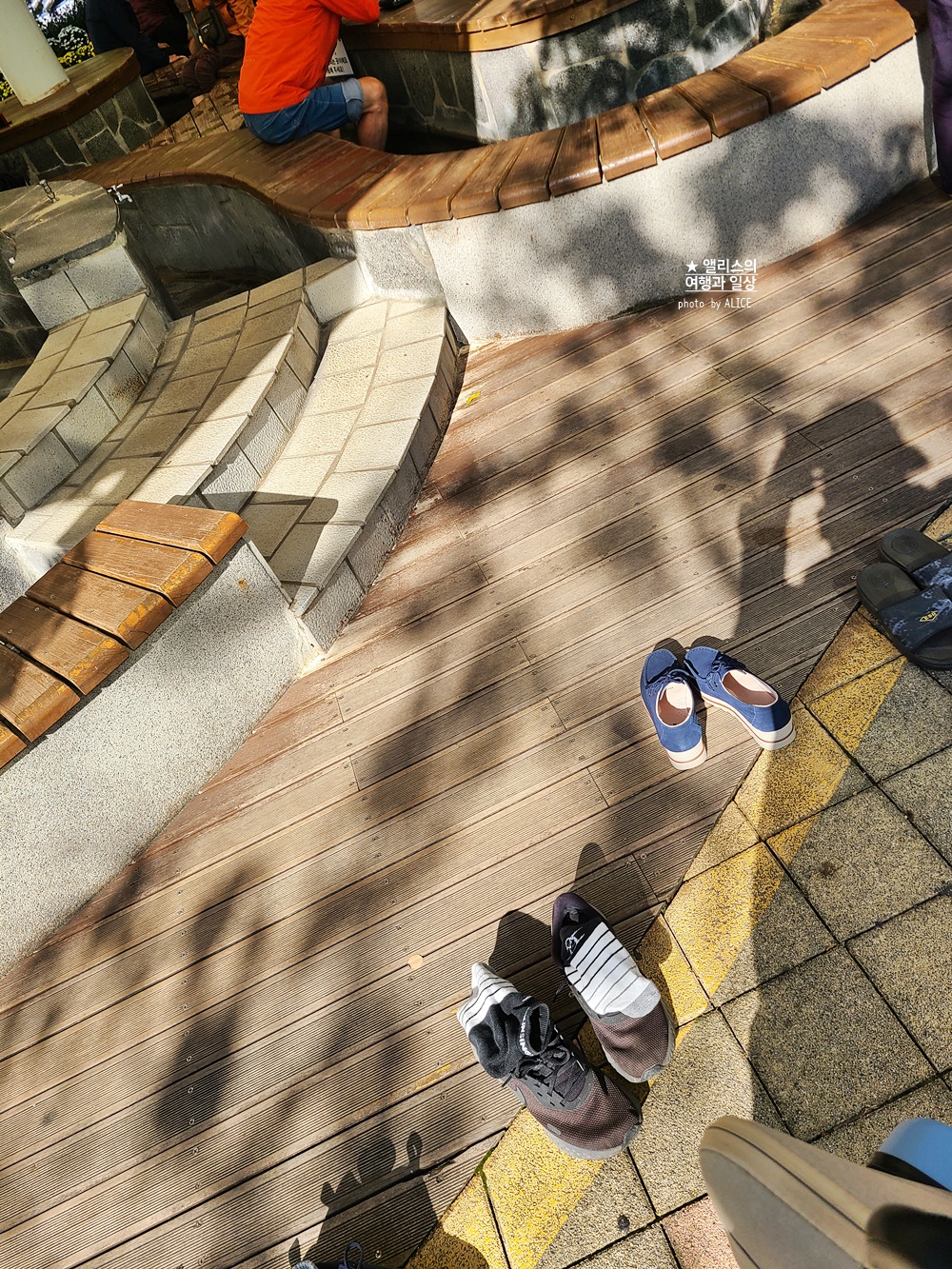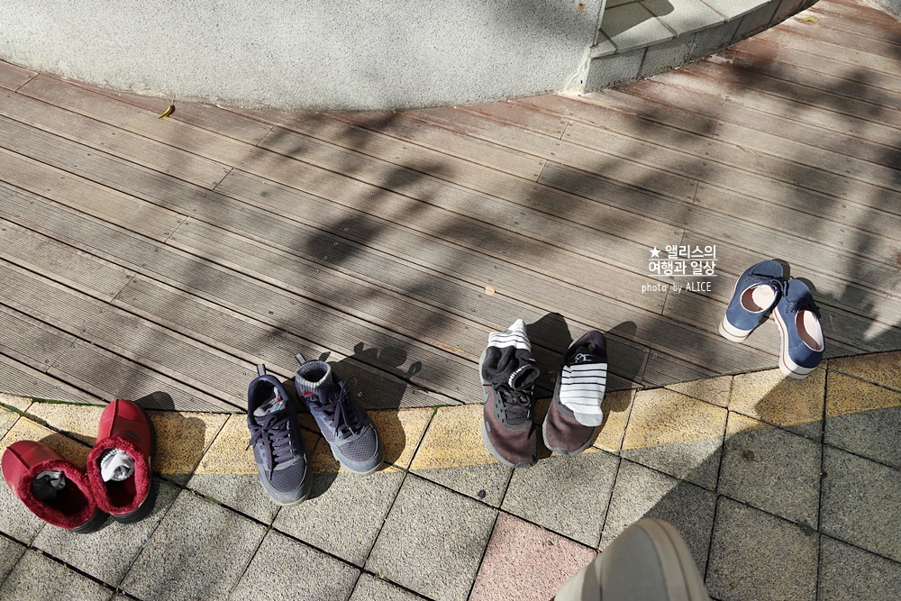 반드시 나무 데크 안으로 진입할 때는 신발을 벗어야 한다. 노란선으로 표시되어있으니 바닥을 보면 쉽게 알 수 있다. 그리고 바로 족욕탕에 발을 담가서는 안 된다. 족욕탕에 발을 담그기 전 미리 발 씻는 곳에서 깨끗하게 발을 씻고 족욕탕에 발을 담가야 하니 잊지 말자.