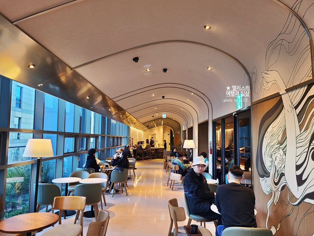 레스케이프 호텔 내에 있는 스타벅스 역시 매력적이다. 길쭉한 공간에 채광이 충분히 들어오는 창으로 한 쪽면을 채우고 있다. 스타벅스 마니아라면 놓칠 수 없는 여기에 이곳에서만 경험할 수 있는 스타벅스 애프터눈티. 애프터눈티에 대한 개인 호불호는 좀 나뉘겠지만 애프터눈티를 좋아하고 스타벅스 매니아라면 이곳에서 여유로운 티타임을 즐길 수 있다.
