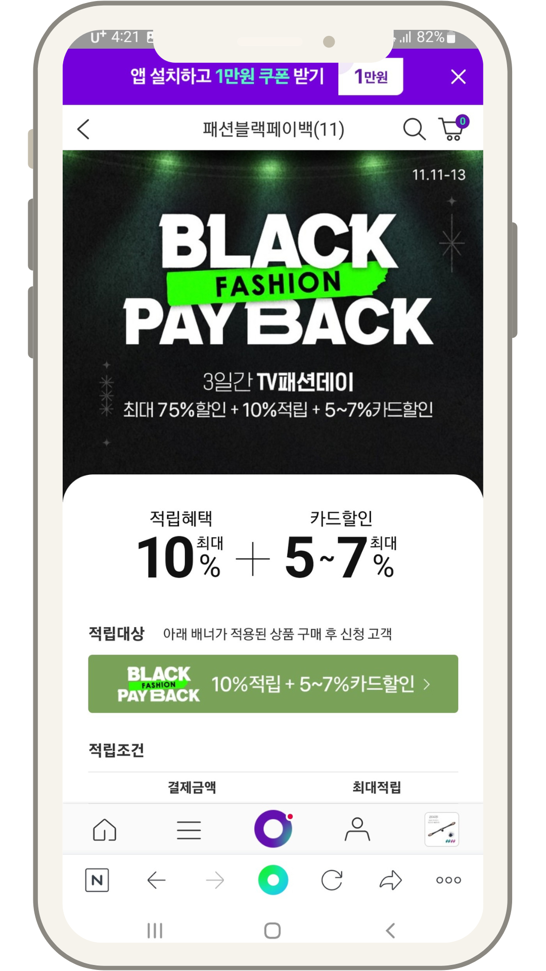 CJ 온스타일 패션 블랙 페이백 최대 78% 할인 + 추가 10% 적립