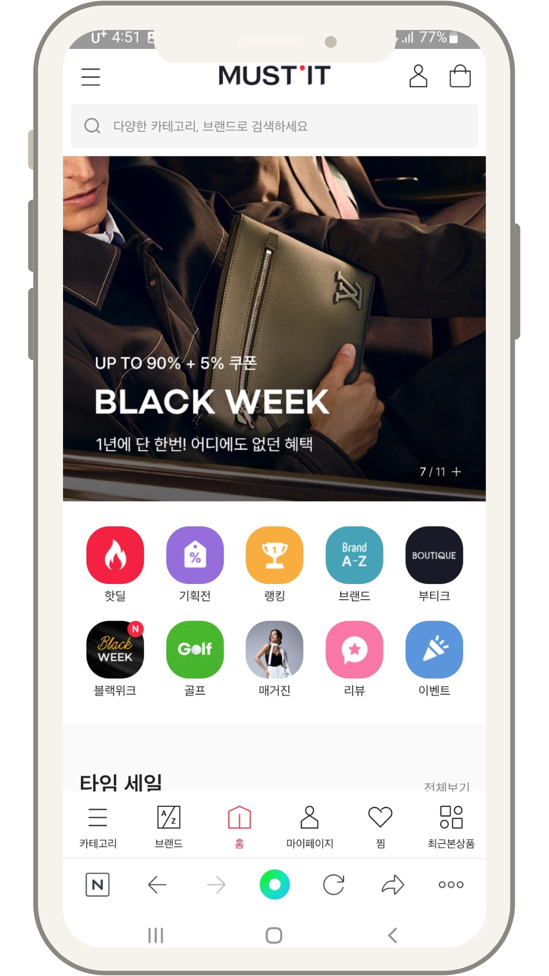 일년 중 가장 큰 혜택을 준다는 머스트익 블랙위크가 진행중이다. 최대 90% 특가에 별도의 11% 할인쿠폰까지 사용 가능하다. 전상품 별도의 5% 쿠폰은 물론 위클리 딜도 이용할 수 있다. 위클리 딜의 경우 매주 화요일 오전 11시에 오픈한다. 시즌오프 세일과 동시에 진행되니 평소 명품 브랜드를 부담없이 구매하고 싶었다면 이번 이벤트를 꼭 활용해보자.