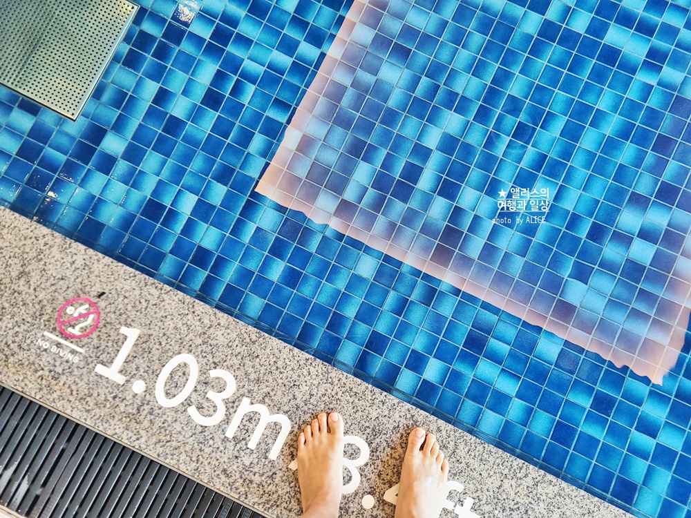 역시 수영장에 사람이 가장 없는 시간대는 남들이 체크아웃하는 시간대다. 체크인과 체크아웃하는 사이 시간대에 가장 수영장에 사람이 없다. 그러니 수영장을 여유롭게 이용하고 싶다면 그 시간대를 이용하자.