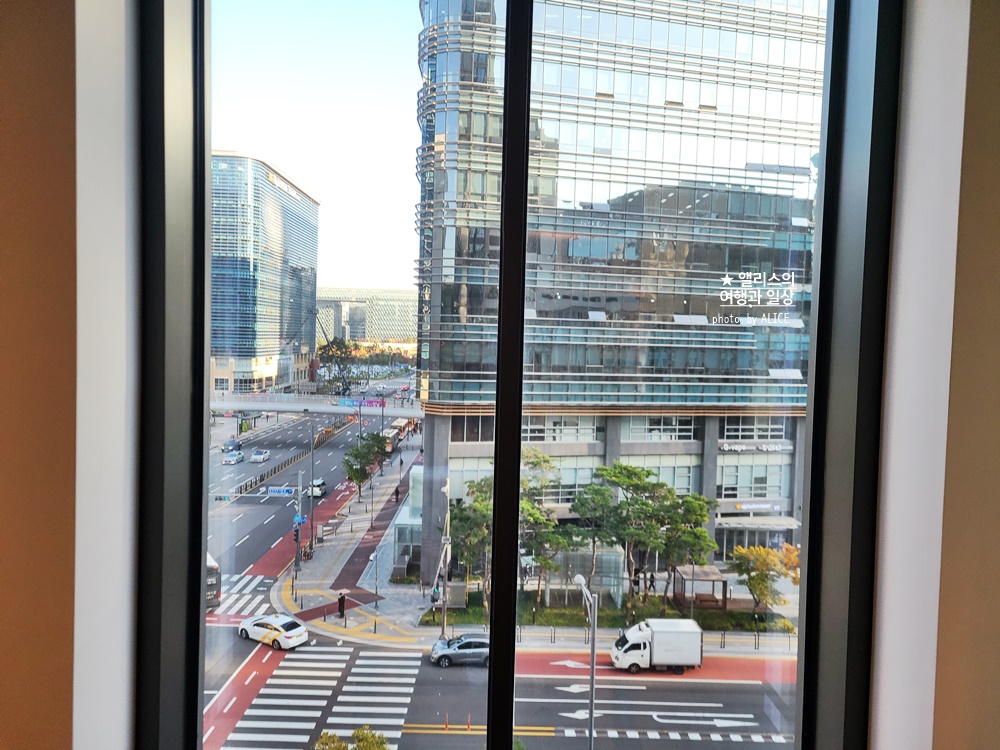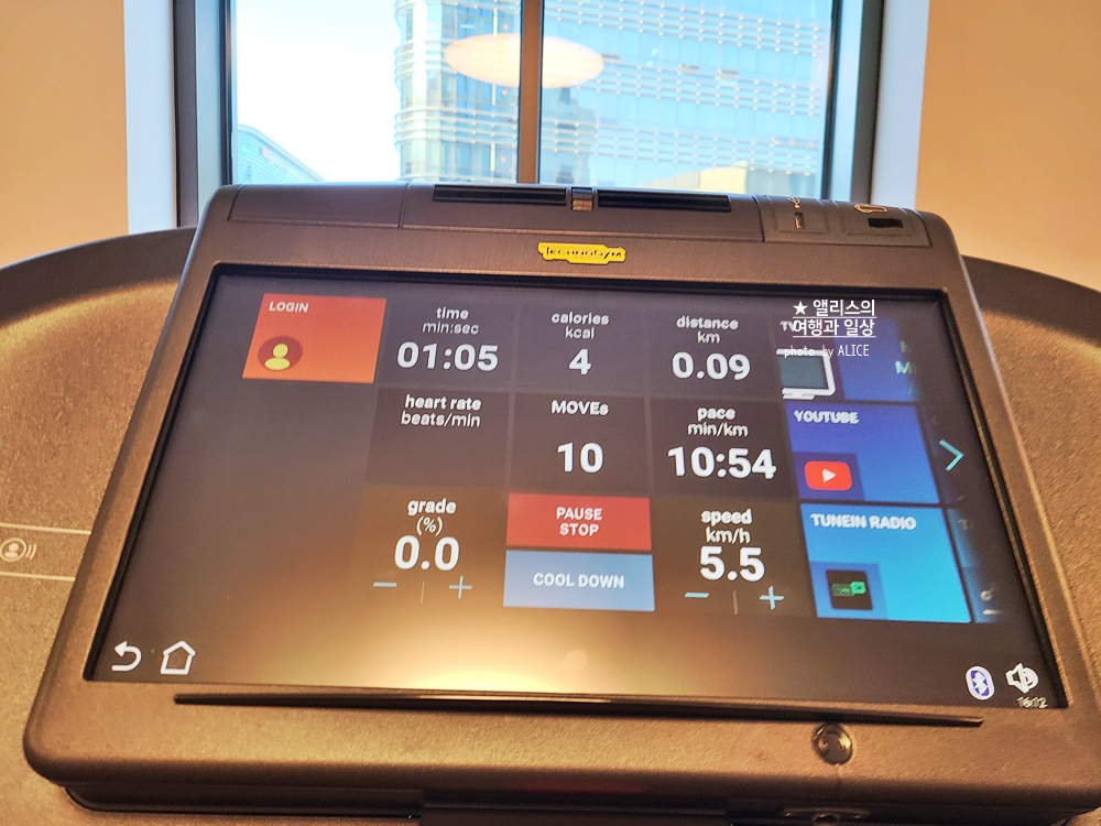 뷰는 뭐 도심지 중심이니 시티뷰. 그래도 번쩍이는 건물과 좁지 않은 도로가 있는 곳이라 답답하지 않았다. 아침이라 그런지 출근하는 사람들의 모습을 볼 수 있었다. 그거 구경하는 재미로 트레드밀 이용 완료!