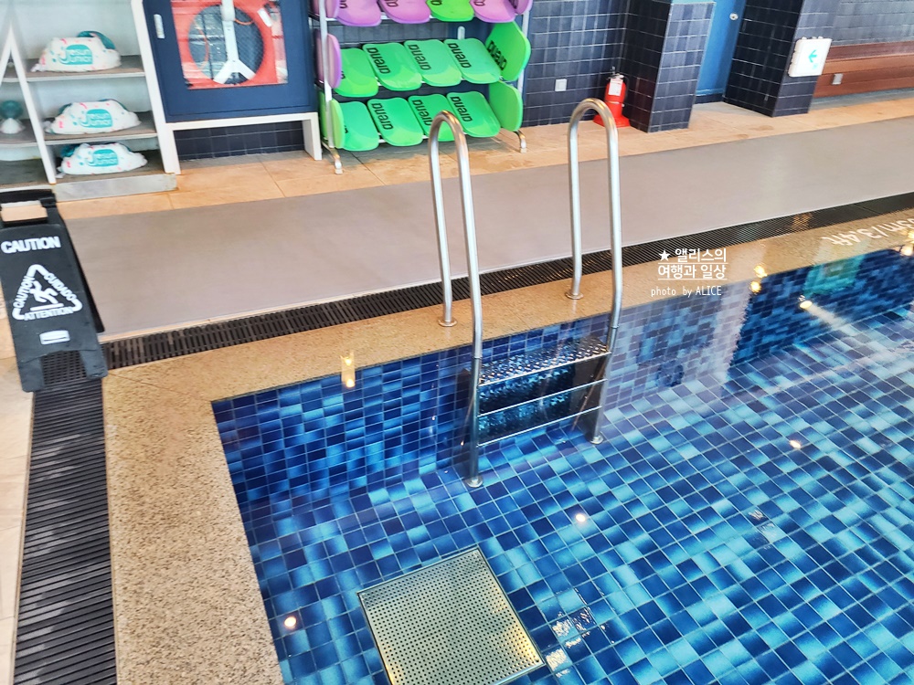 어른들을 위한 수영장과 아이들을 위한 수영장이 운영되고 있으며 미온수가 제공되어 계절 상관없이 실내에서 수영을 즐길 수 있다는 점이 장점이었다.
