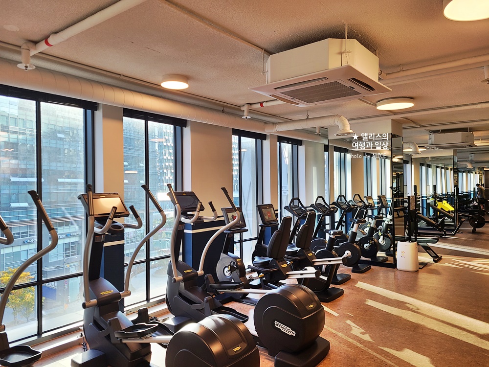 호텔 규모와 피트니스 센터 규모가 반드시 일치하는 것은 아니다. 대체로는 비례하기는 하지만 규모에 따라 이용객수에 따라 다른데, 그래비티 서울 판교 호텔의 수영장과 피트니스 짐은 생각보다 규모가 작은 편이 아니었고 특히 피트니스 짐의 경우 별도의 PT공간도 있어서 이용하기 좋았다.