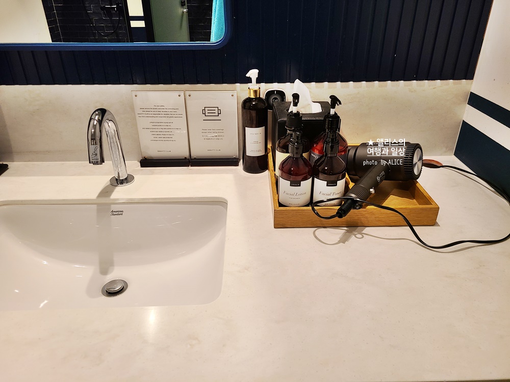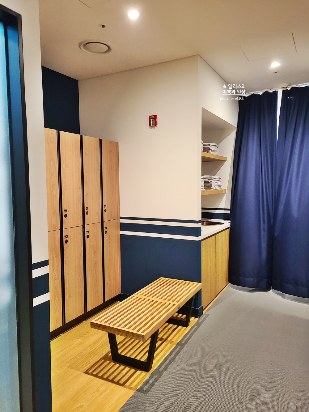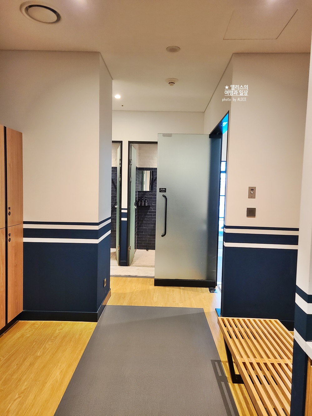 역시 평일 체크인/아웃 시간대라 아~무도 없던 수영장 그리고 샤워실. 덕분에 편하게 이용할 수 있었고 사진도 찍어볼 수 있었다. 샤워실은 깔끔하게 두 곳, 별도로 앉아서 쉴 수 있는 나무 벤치, 넉넉한 수건. 탈수기도 있음!! 탈수기 없는 곳도 많은데 탈수기가 있어서 반가웠다!