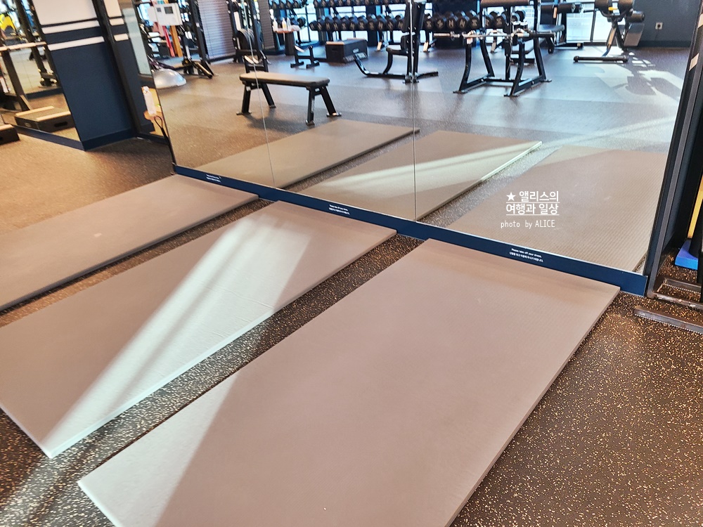 물론 그룹 GX공간도 따로 있다. 아침 GX에 참여했는데 아무도 없어서 결국 1:1 수업이 되었다. 아침에는 GX가 몸 푸는 데 집중하는 프로그램이니 몸 풀이 안성맞춤. 1:1 수업이니 내 속도에 맞춰서 진행되니 나의 만족도 아주 높았다!