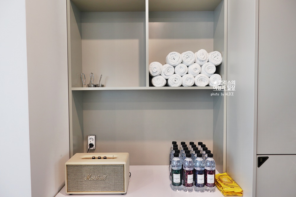 내 생각보다 피트니스 기구가 다양했다. 그리고 별도의 세라젬 안마기도 있어서 운동 전에 몸을 풀어주기에도 좋았다. 간단한 생수와 수건도 필요한 만큼 사용할 수 있다.