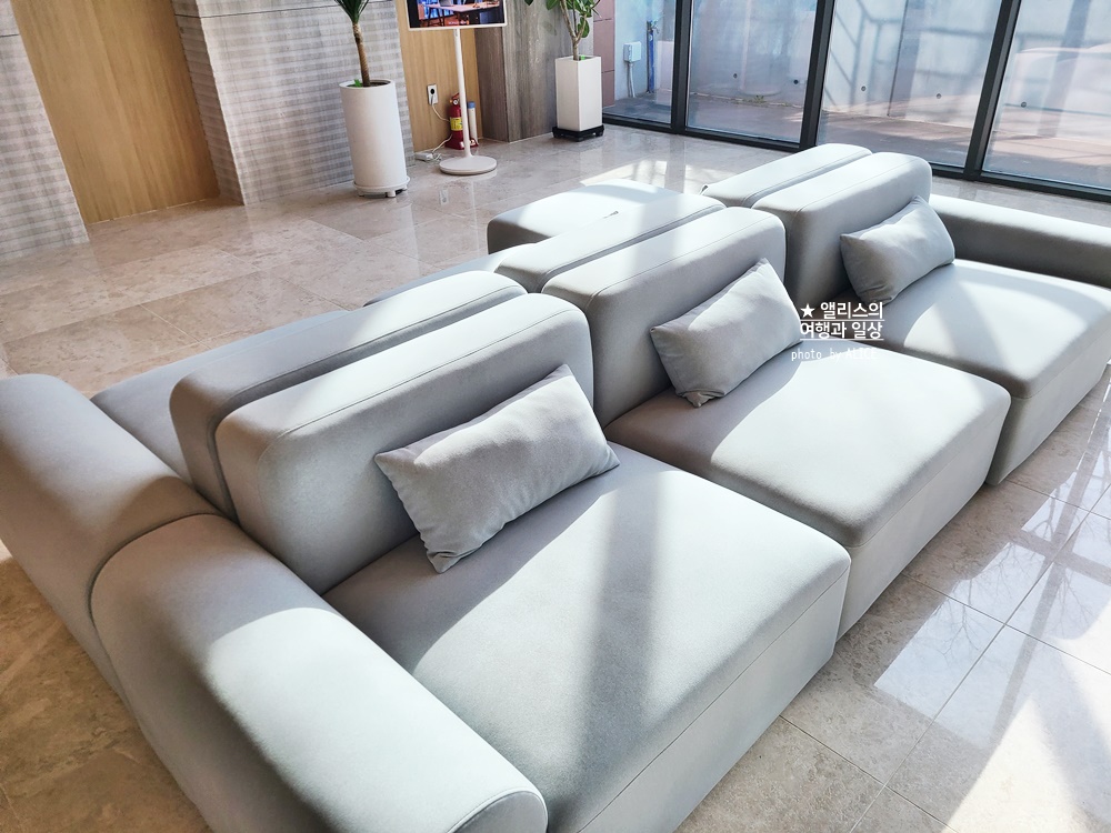 로비는 상당히 넓고 높았다. 이렇게 높고 넓은 로비는 참으로 오랜만인 것 같다. 신축 호텔의 장점이기도 하다. 오히려 기존의 호텔들에 비하면 공간 활용을 이렇게 넓게 할 수 있는 것이 특징. 소파도 넉넉 푹신, 앉을 곳도 많았다.