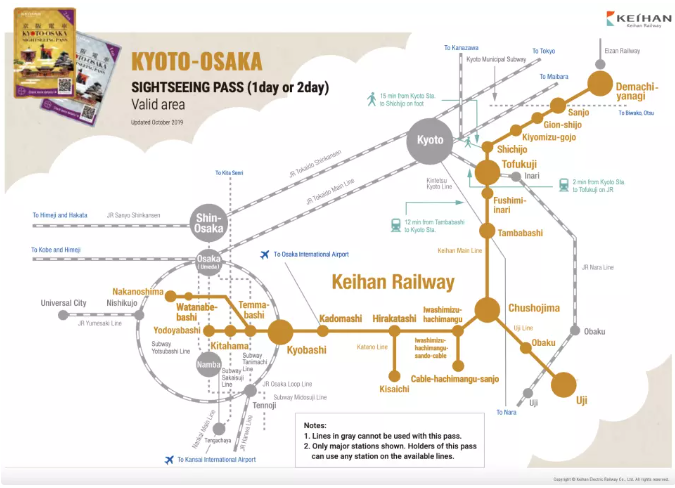 게이한 전철 패스: 교토, 오사카 관광 승차권 1일/2일권