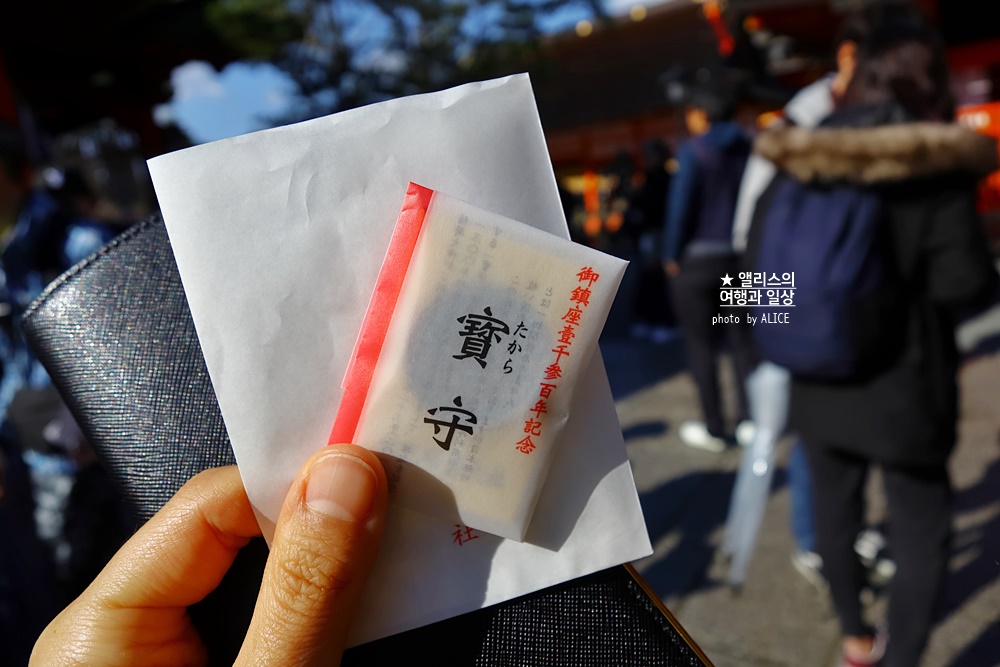 교토에 있는 이나리 산에 있는 여우 신사는 일본 내 여우신사의 총본산이다. 이 여우신사는 원래 농사를 주관하는 농사의 신을 모시는 곳이었는데 후대에 이르러 지금은 상업 번창, 사업을 융성하게 해주는 수호신으로 모시고 있다고. 그래서 돈을 잘 버는 부적 등을 팔고 있다. 재미로 사본 저 작은 부적. 효과가 있었을까! ㅋㅋㅋ