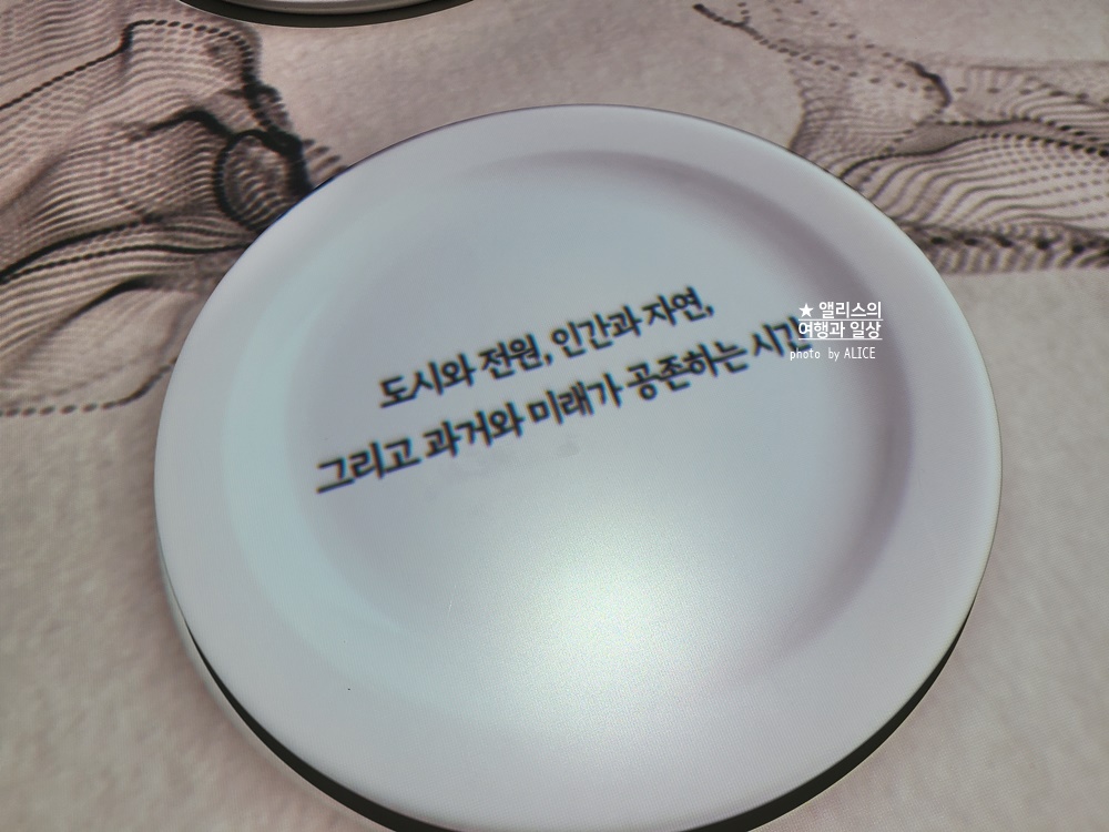 아난티가 이 디지털 미디어 갤러리를 통해서 전달하고자 하는 메시지를 각 접시에 담고 있었다.