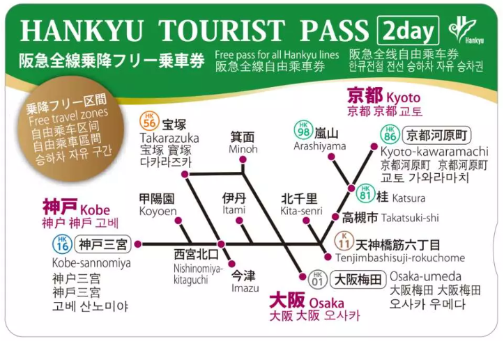 오사카, 교토, 고베를 이동할 때 한큐 전철을 무제한 이용할 수 있는 교통패스다. 사용범위가 꽤나 넓은 것이 특징이다.