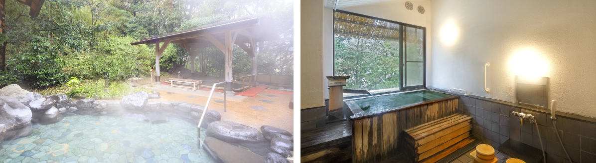 넓은 공간이 야외 온천으로 꾸며져 있으며 남녀가 분리된 공간에서 충분한 야외 노천을 즐길 수 있는 것이 특징이다. 특히 한 두 군데의 노천탕이 아닌, 다양한 모습의 온천탕을 가지고 있어서 온천을 즐기는 재미가 있다. (각각 약 5개 정도의 노천탕과 사우나가 있음)