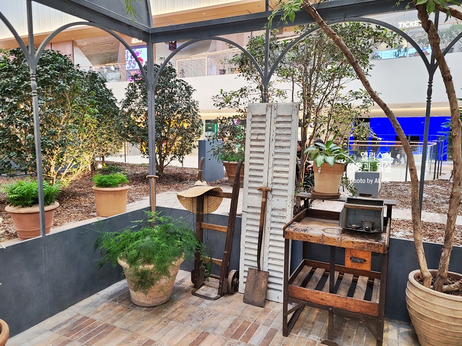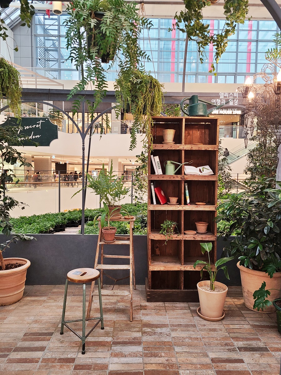 실내지만 자연채광이 들어와서인지 식물들 관리가 정말 잘되고 있었다. 그리고 곳곳에 정원관리 소품등이 있어서 사진 찍는 맛도 있는 곳. 덕분에 항상 사운즈 포레스트는 인증사진을 찍는 사람들이 붐비는 곳이기도 하다. 그러나 웬만큼 붐벼도 복잡하지 않은 이유는 유모차가 동시에 8대가 돌아다녀도 여유로운 넓은 (무려 1천 평) 공간이라서 가능한 일이다.