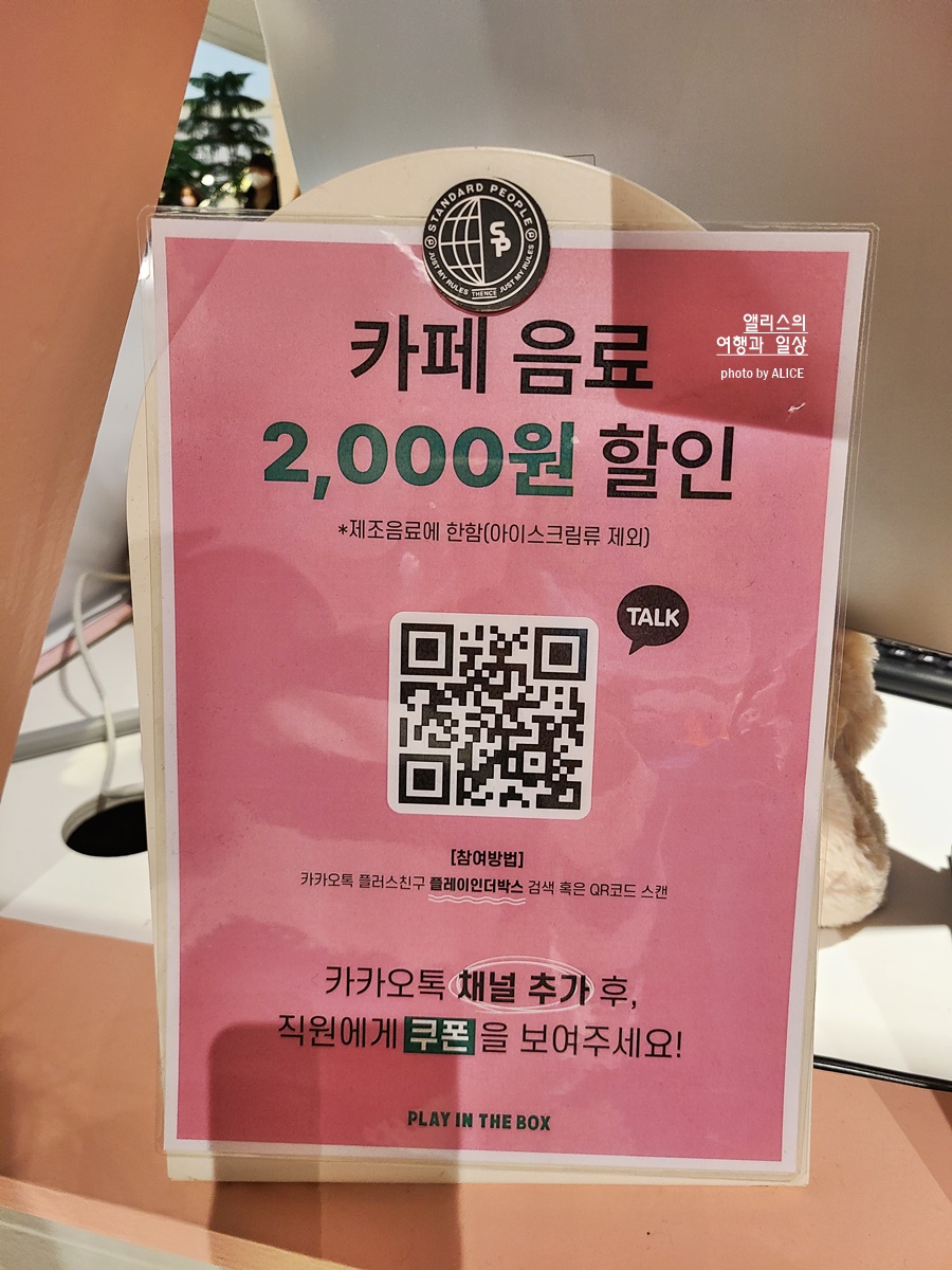 놀 수 있는 메뉴도 있고 마실 수 있는 음료 메뉴도 있으니 이곳에서 잠시 쉬어가도 괜찮을 것 같다. 나는 이벤트만 참여해서 스티커 2종 득템! 저널에다가 야무지게 붙여야지!