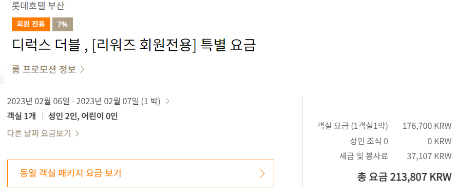 롯데호텔 부산 날짜별 객실요금 확인하기