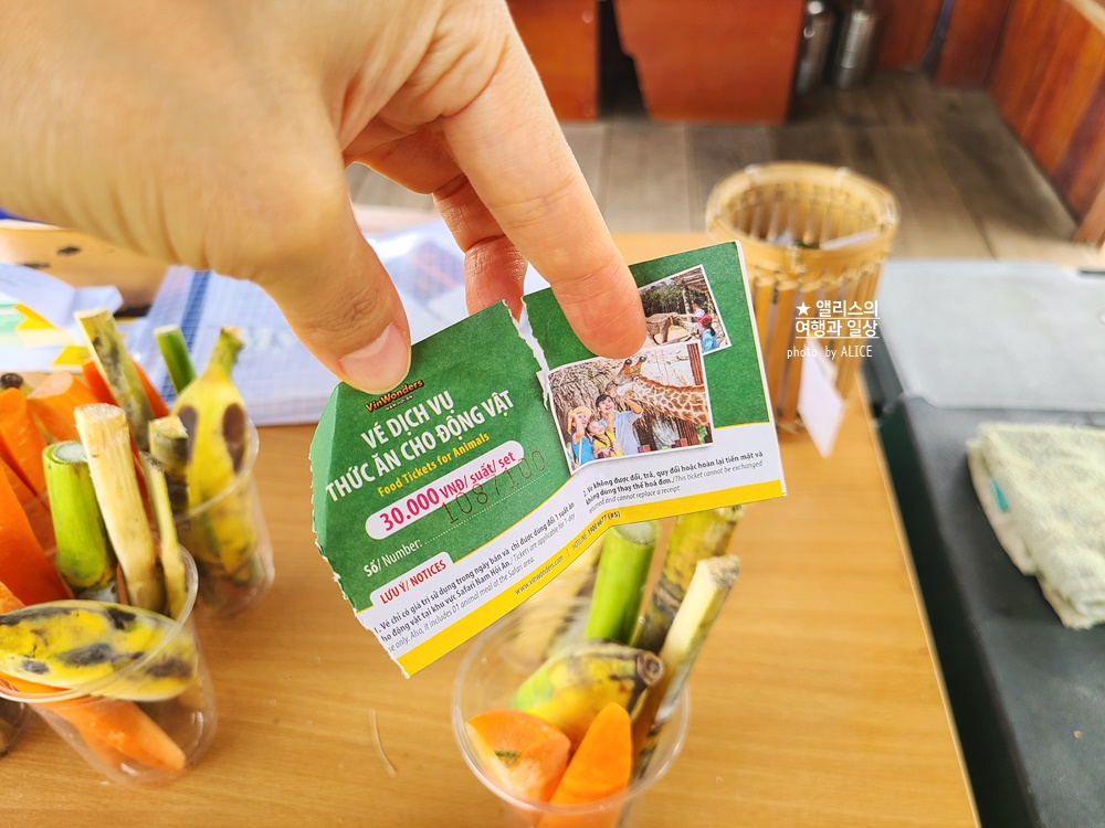 아무래도 초식 동물 중에서 가장 인기스타는 기린과 코끼리. 그래서 두 구역은 하선이 가능하다. 코끼리가 좋아하는 간식을 샀다. 간식 한 컵당 3만동.