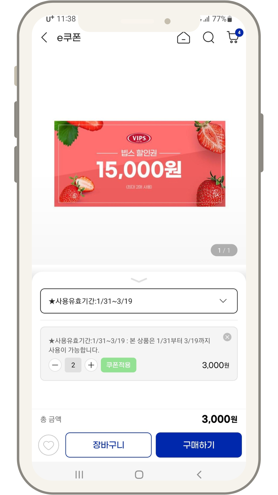 2. 빕스 딸기 퍼레이드 90% 할인권 구매방법