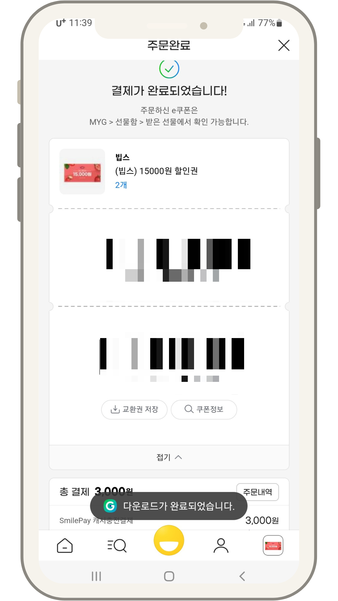 현재 15,000원 빕스 상품권을 1,500원에 구매 가능하다. 단 1인당 최대 6장까지만 구매 가능하고, 금액을 사용할 때 제한이 있지만 그래도 통신사&제휴카드와 중복 사용가능해서 상당히 할인율을 높일 수 있다.