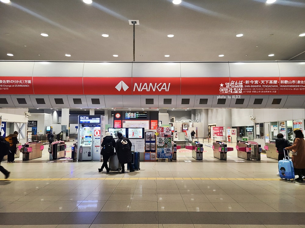 탑승 장소는 티켓 교환처 반대편인 NANKAI 빨간색이라고 적힌 부분으로 표를 넣고 (반드시 회수해야 함) 탑승장소로 이동하면 된다.