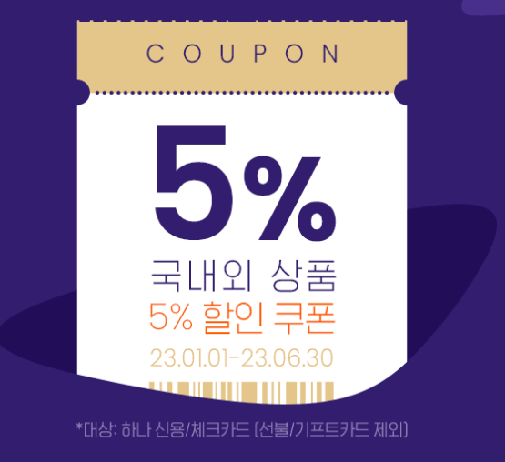 · 할인 코드를 적용 후 하나카드로 결제 필수