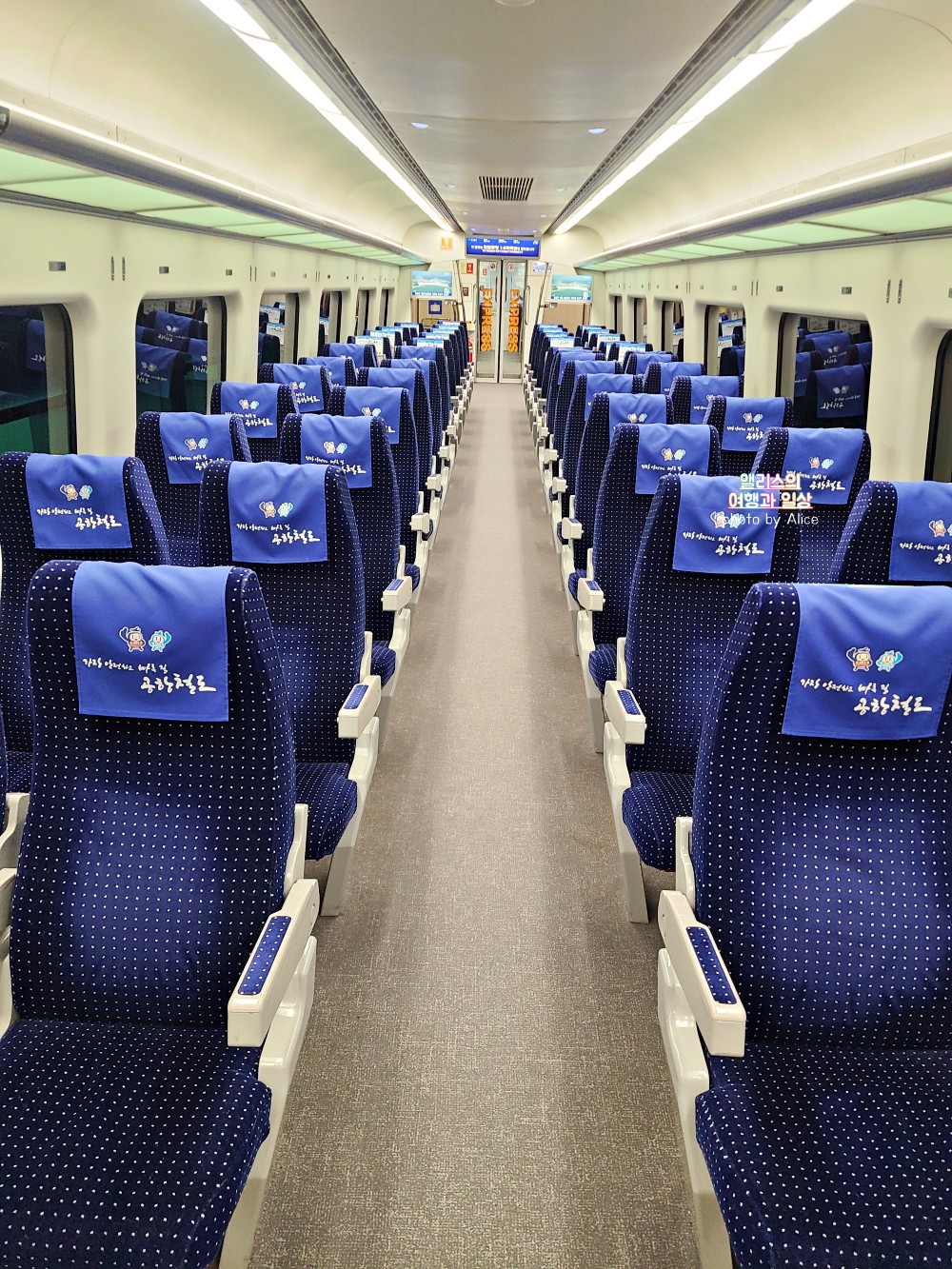 넓고 쾌적하고 편리하게 이용해서 인천공항까지, 또는 서울역까지 단번에 이동이 가능한 것이 특징인 AREX. 의자도 푹신하고 꽤나 깔끔하게 잘 관리되고 있다.