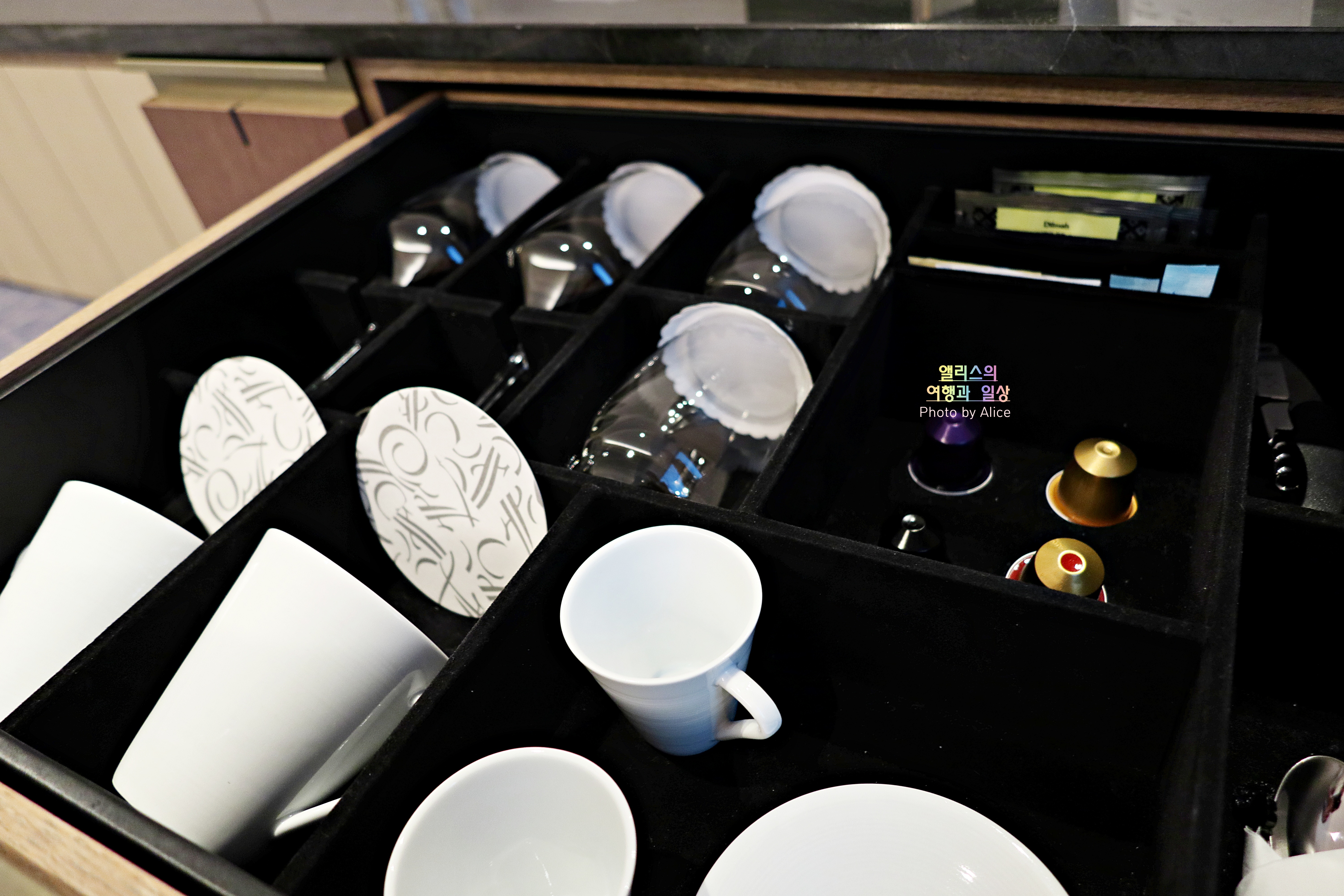 모든 객실에는 가벼운 다도를 즐길 수 있도록 별도의 티팟과 작은 찻잔이 준비되어있다. 잎차는 아닌 티백 차이지만 이 티백 차를 이용해서 충분히 우려낸 뒤 찻잔에 따라 기분좋은 차 한잔 마시기에도 충분하다. 별거 아닌 것 같은 이 찻잔이 이 찻잔만으로도 객실을 힐링공간으로 만드는 매력이 있다.